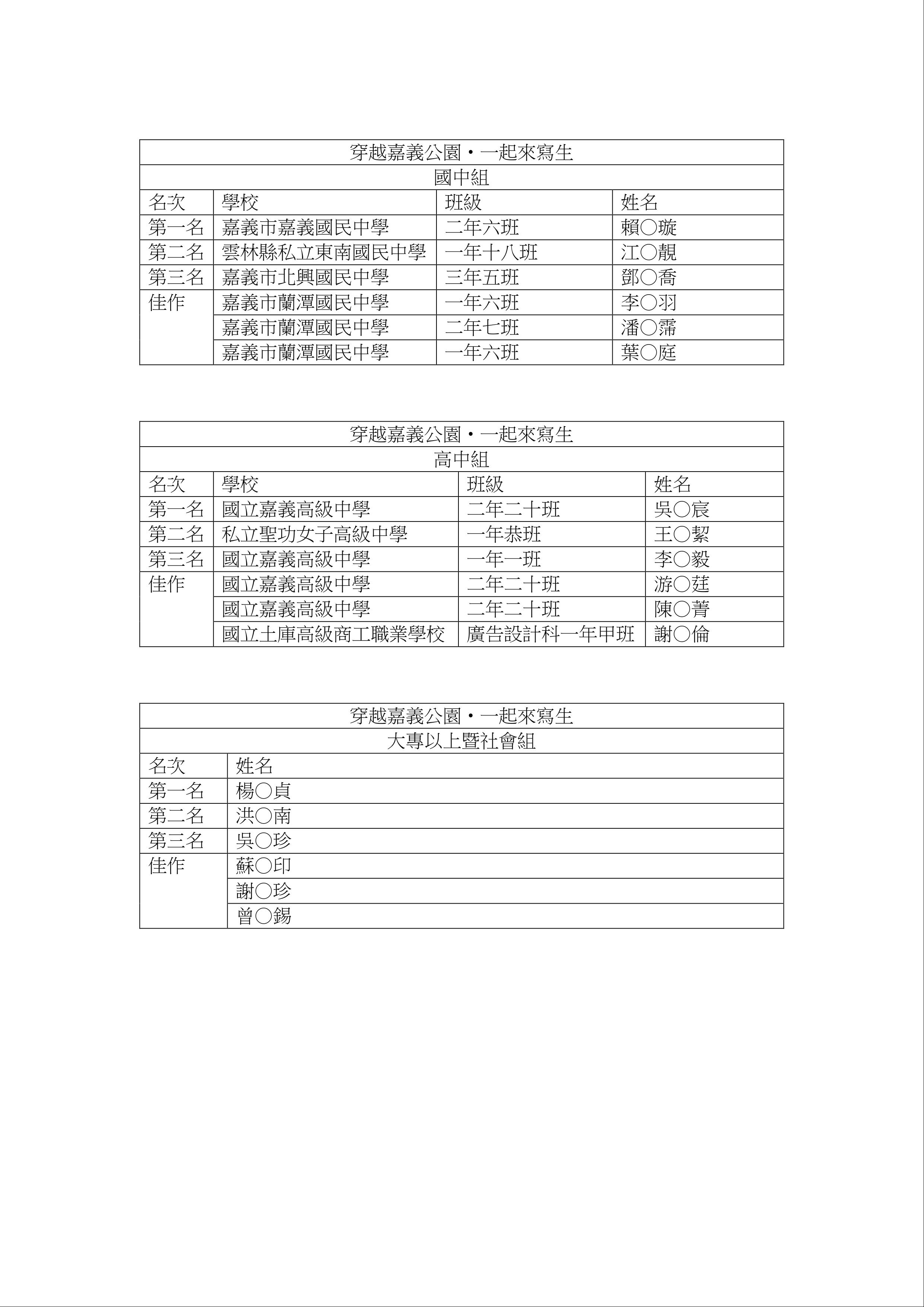 【穿越嘉義公園‧一起來寫生】得獎名單公告