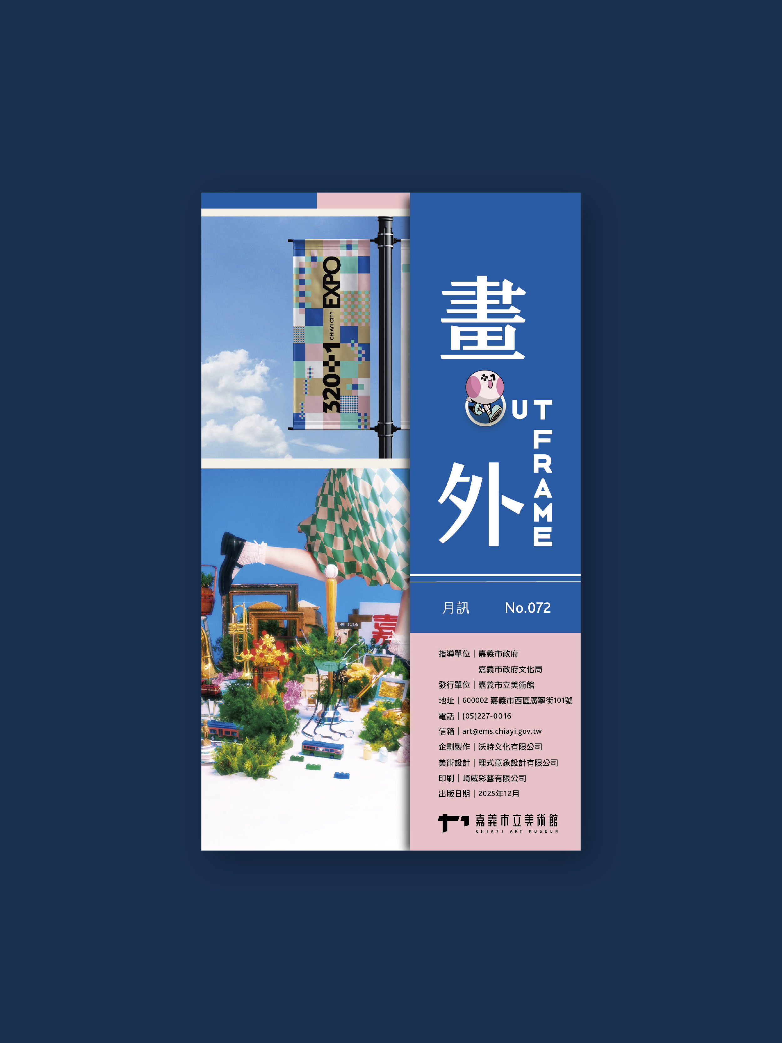 本期正面介紹「320+1嘉義城市博覽會」的設計與構成,講述三頁文團隊設計「320+1」主識別的背後故事。背面介紹嘉義美術館「校園藝術扎根計畫」回顧展─「共創的教室」,回溯五年來藝術家進入校園,與學生共同創作的成果與案例。
