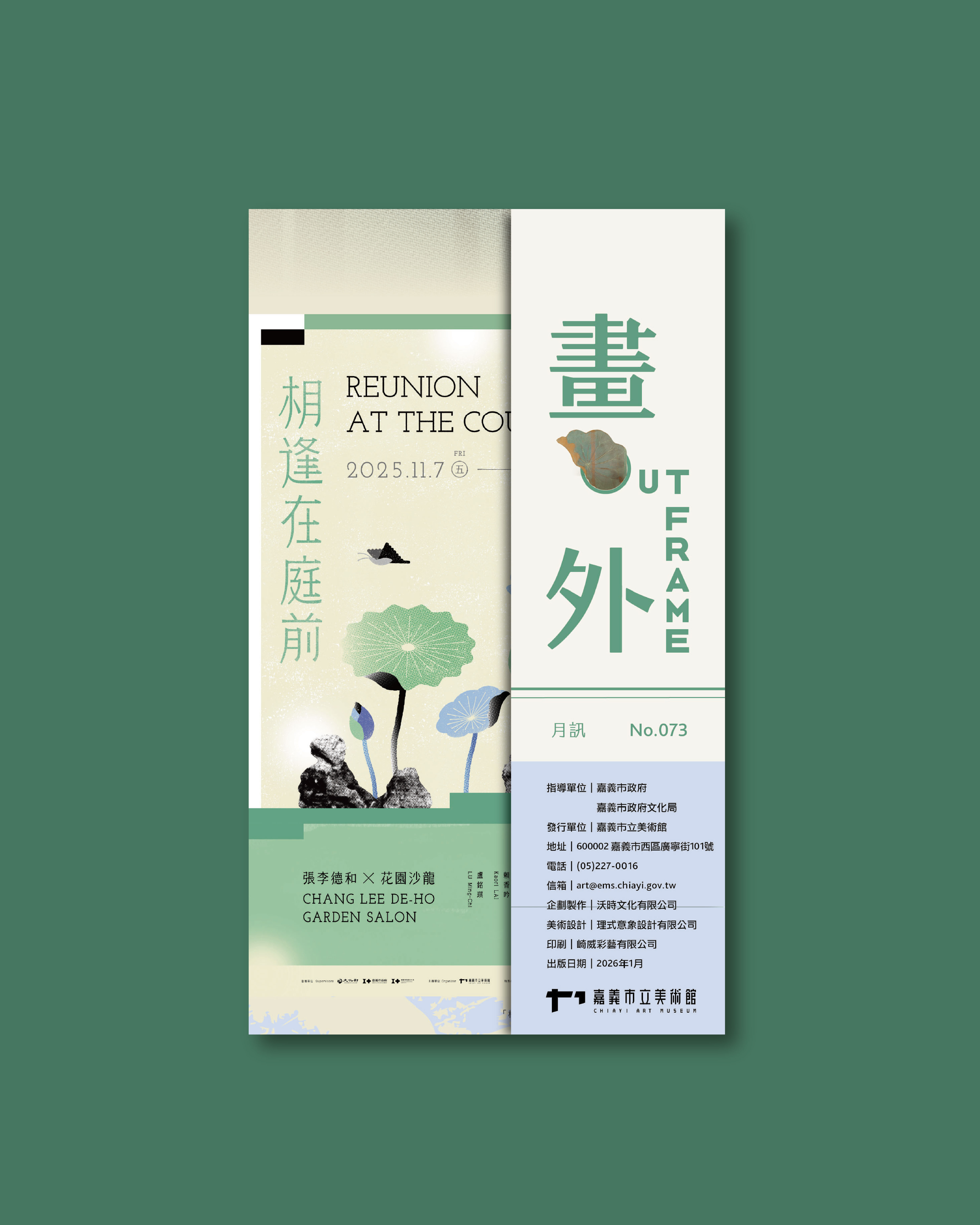 本期正面介紹114年「打開藝術之門-典藏捐贈感謝會」。3月22日,嘉美館迎來今年的「典藏捐贈感謝會」,感謝去年捐贈作品的藝術家家屬、親友與藏家,感謝會當日溫馨感人,新入藏的作品更具藝術史的價值與意義。 背面介紹側棟申請展洪鈞元個展「義方」。展覽以紀錄片〈義方〉(2024)為核心,透過藝術家洪鈞元的視角,結合其妻子爺爺林義方的生命歷程,探討嘉義人在日本殖民時期及戰後動盪中的歷史記憶。