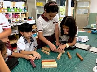 1. 透過視覺、觸覺、聽覺與嗅覺觀察不同木材,並拼湊立體拼圖了解各種卡榫結構。