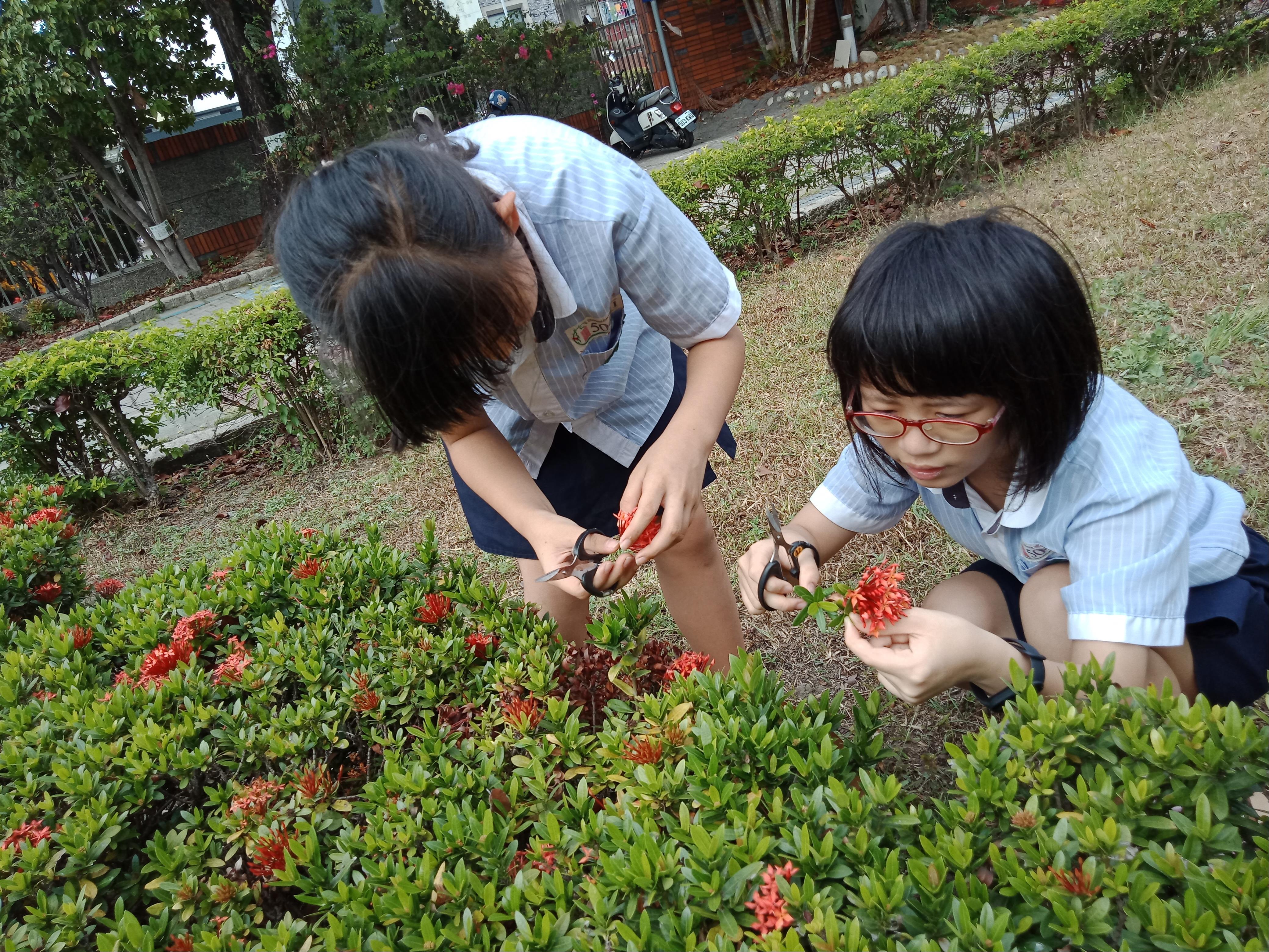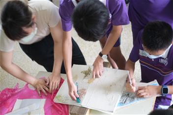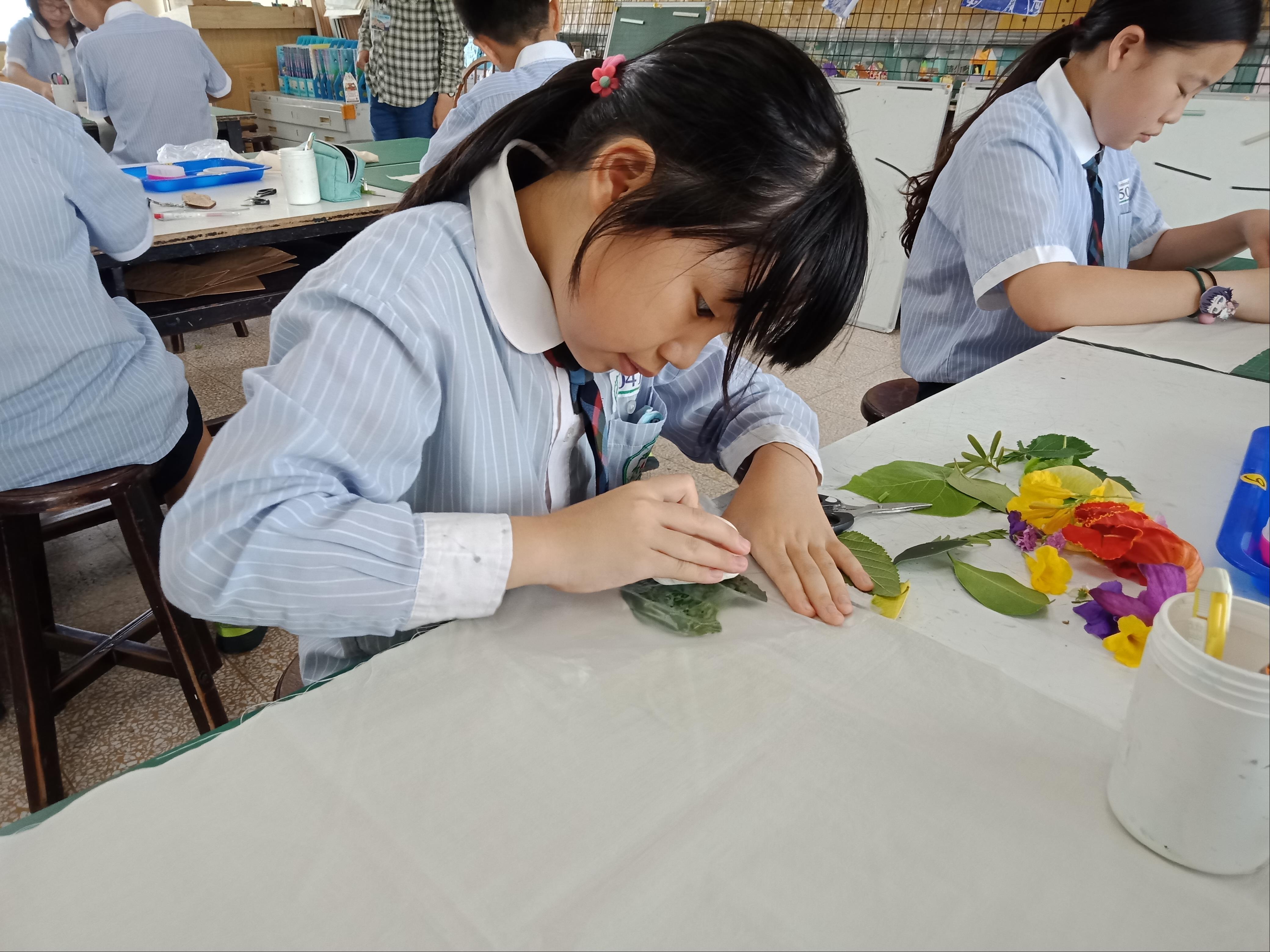 1. 在校園內採集新鮮花草,用於小誌布質封面染拓,以及第三週所需的果實與乾燥樹葉。