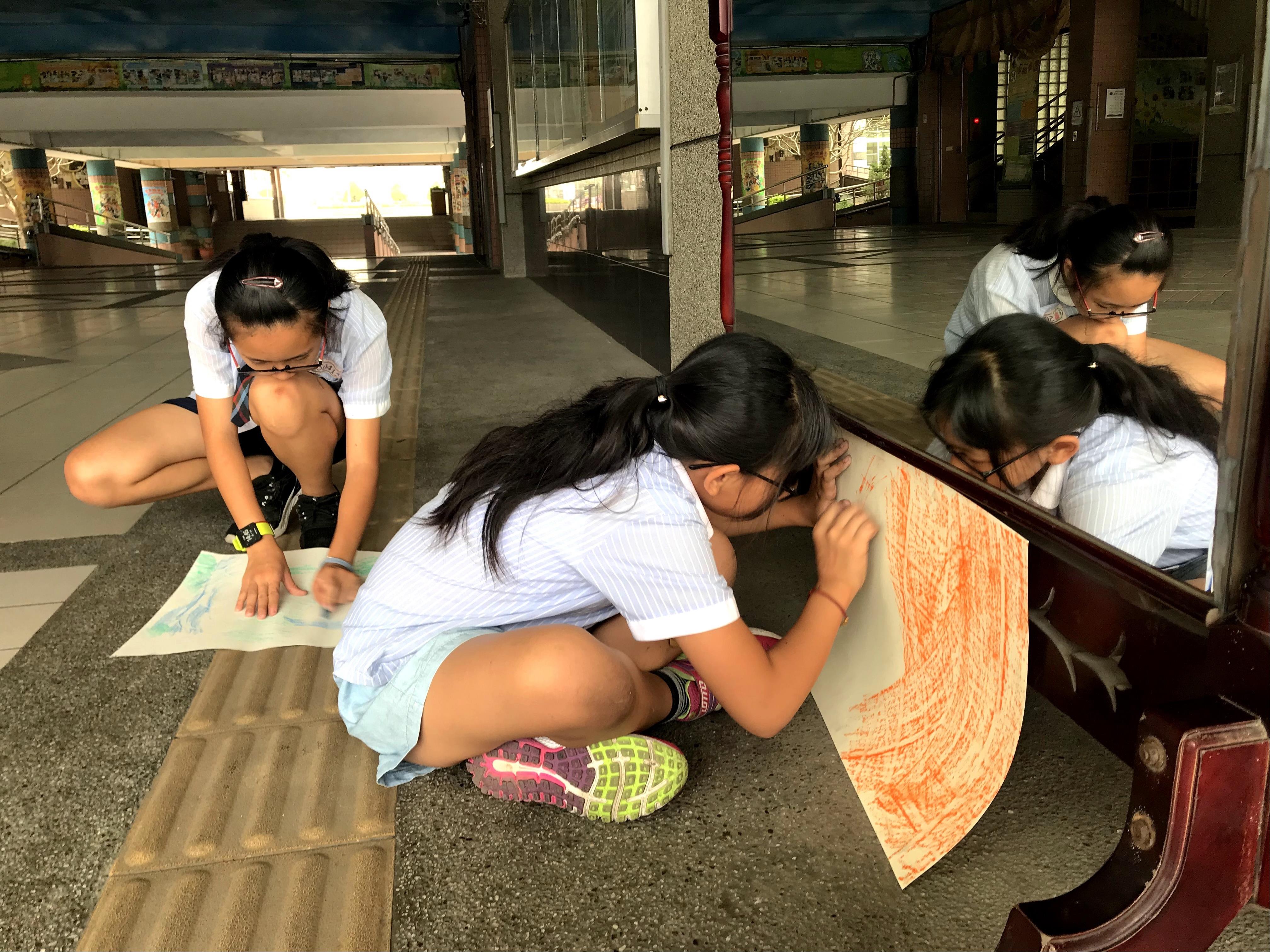 3. 在校園中收集材質拓印,並保留時間思考頁面配置與花草選擇。