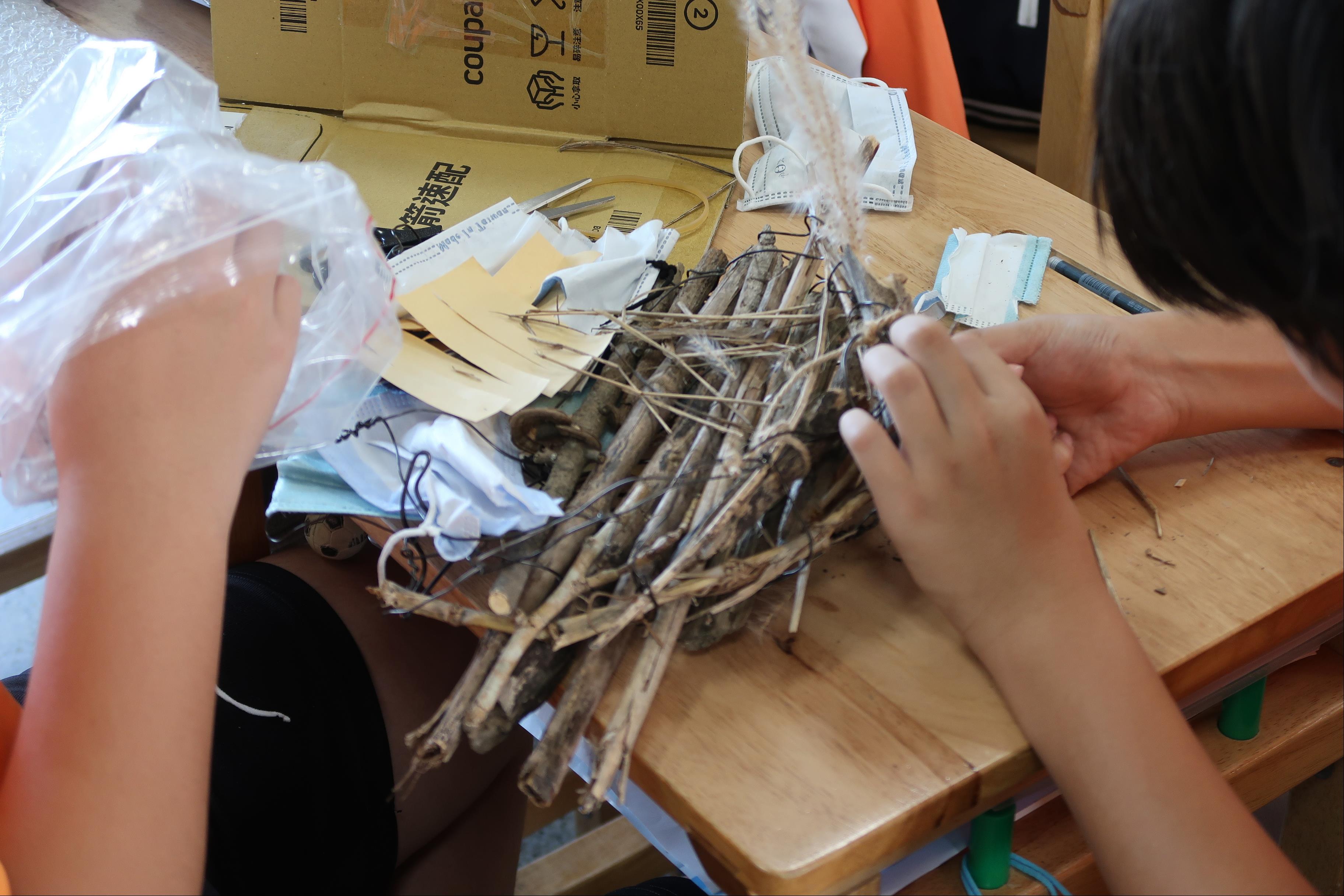 7. 校園環境觀察:到校園各處的樹木上尋找鳥巢,書寫學習單,做鳥巢的速寫。並想像你是一隻鳥會想在什麼樣的樹上和什麼地方築巢。