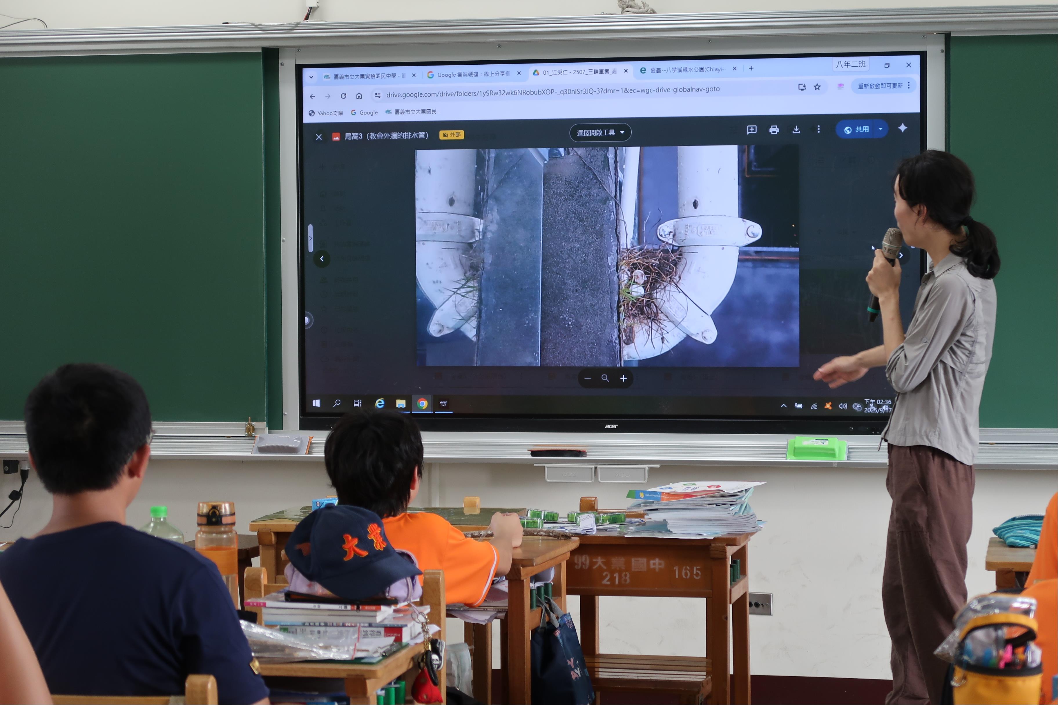 2. 鳥類築巢現象介紹:以提問的方式來帶領學生了解鳥類為何築巢和鳥巢會築在哪裡,讓學生對於鳥巢有更多的認知。