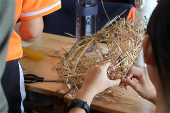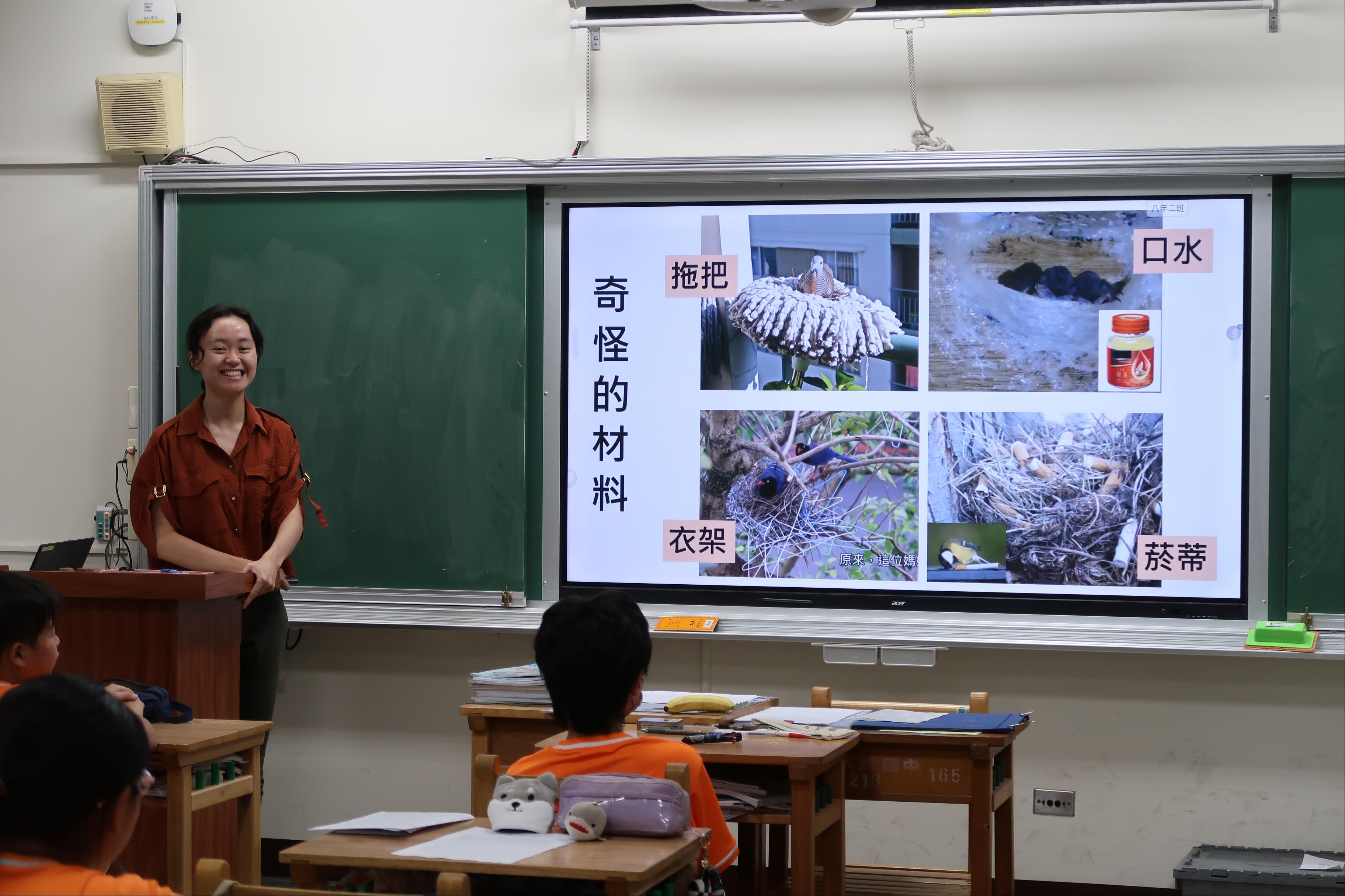 4. 鳥類築巢現象與知識(二):介紹各類鳥巢,和認識哪些鳥會築成其形狀,以簡報圖片與學生們介紹,也帶來人工巢實品做分享,讓同學傳閱。