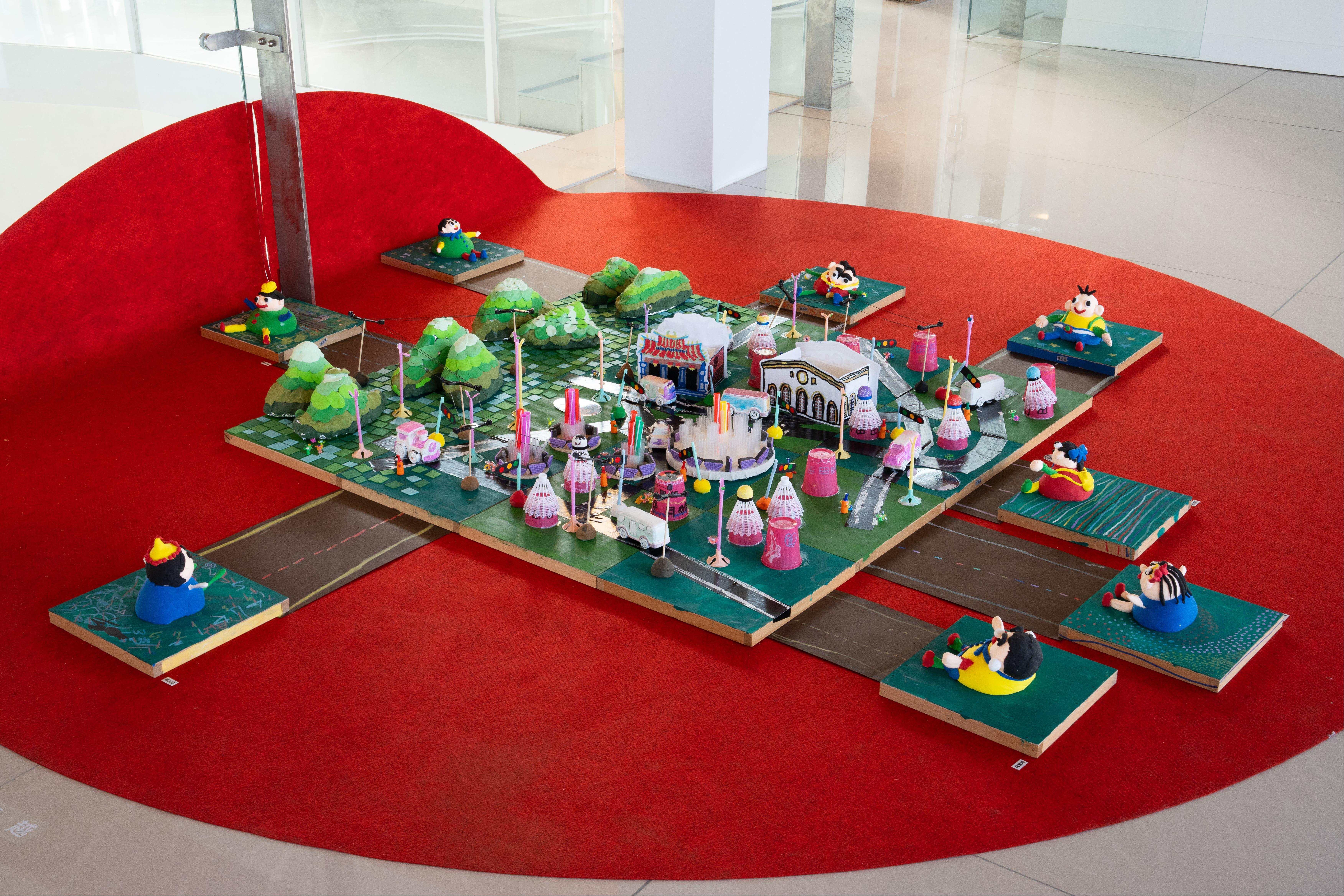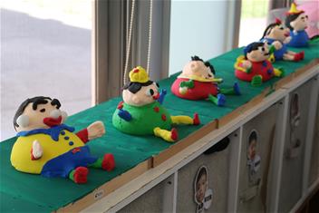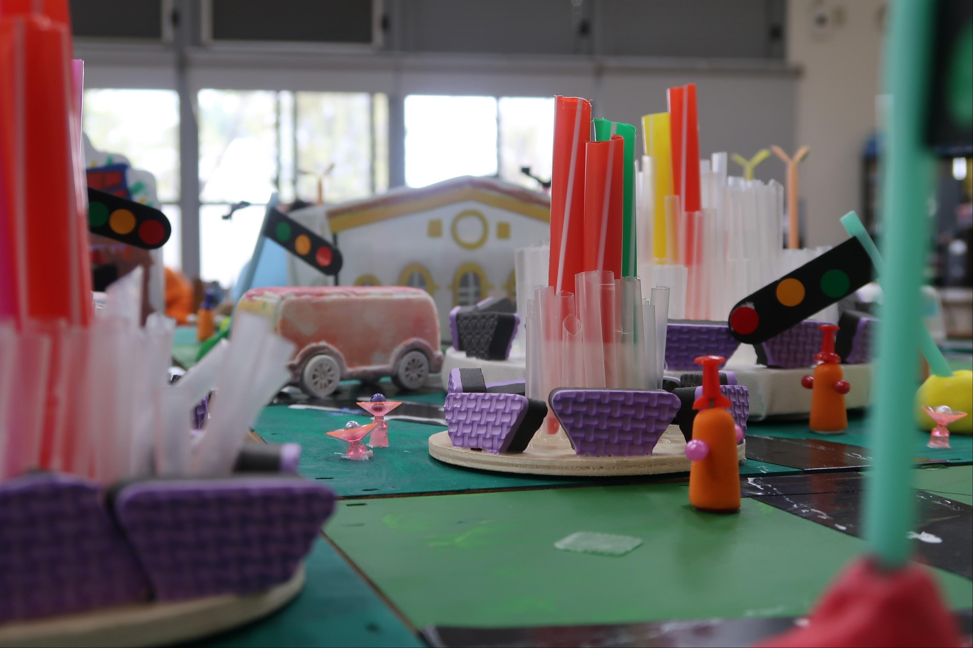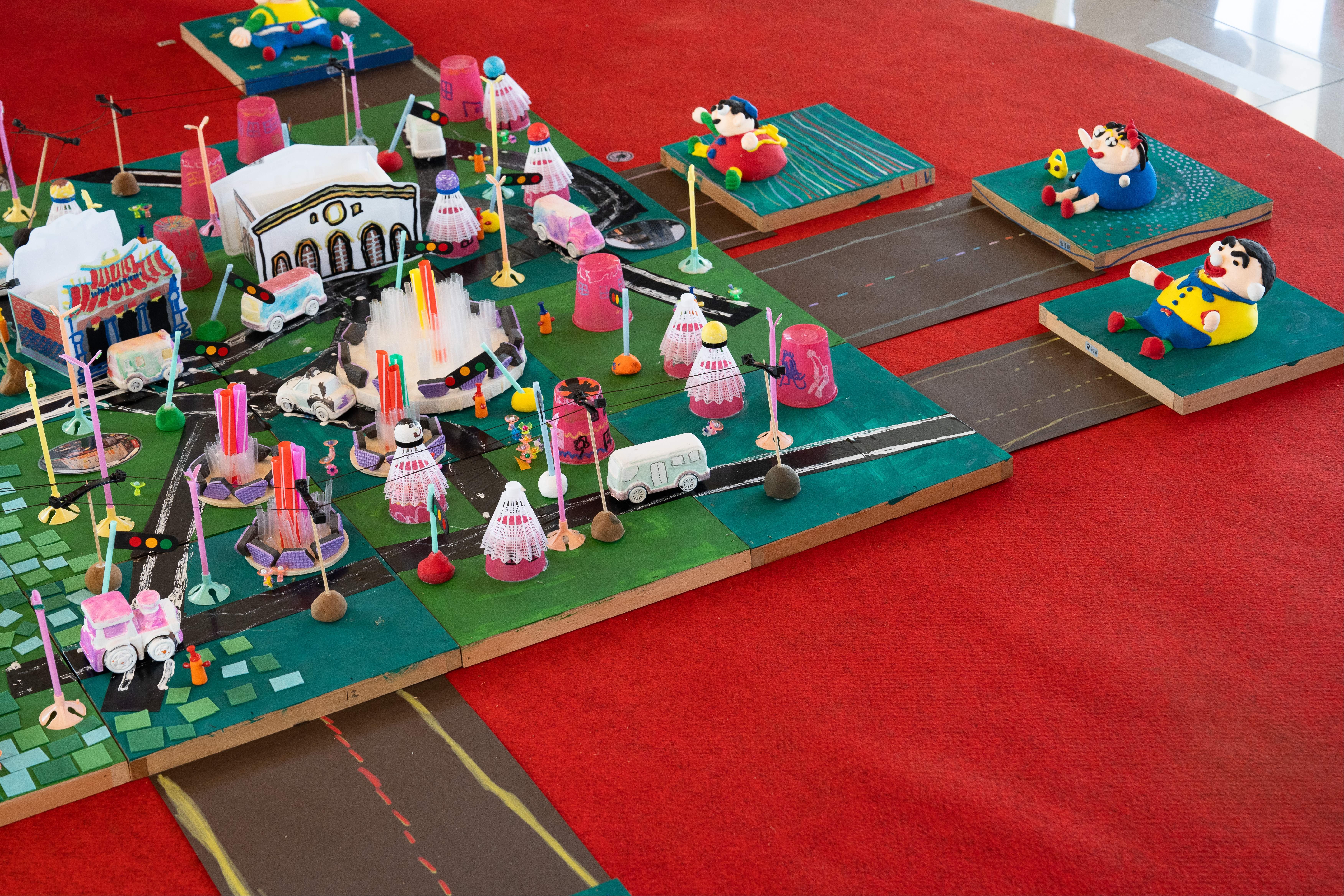 後期課程進行整體整合,讓同學規劃平面地圖、製作黏土人偶和街道物件。最後將所有元素組裝至模型底座,完成具有個人特色的桃城地圖,在實作中培養空間配置與創意表現能力。