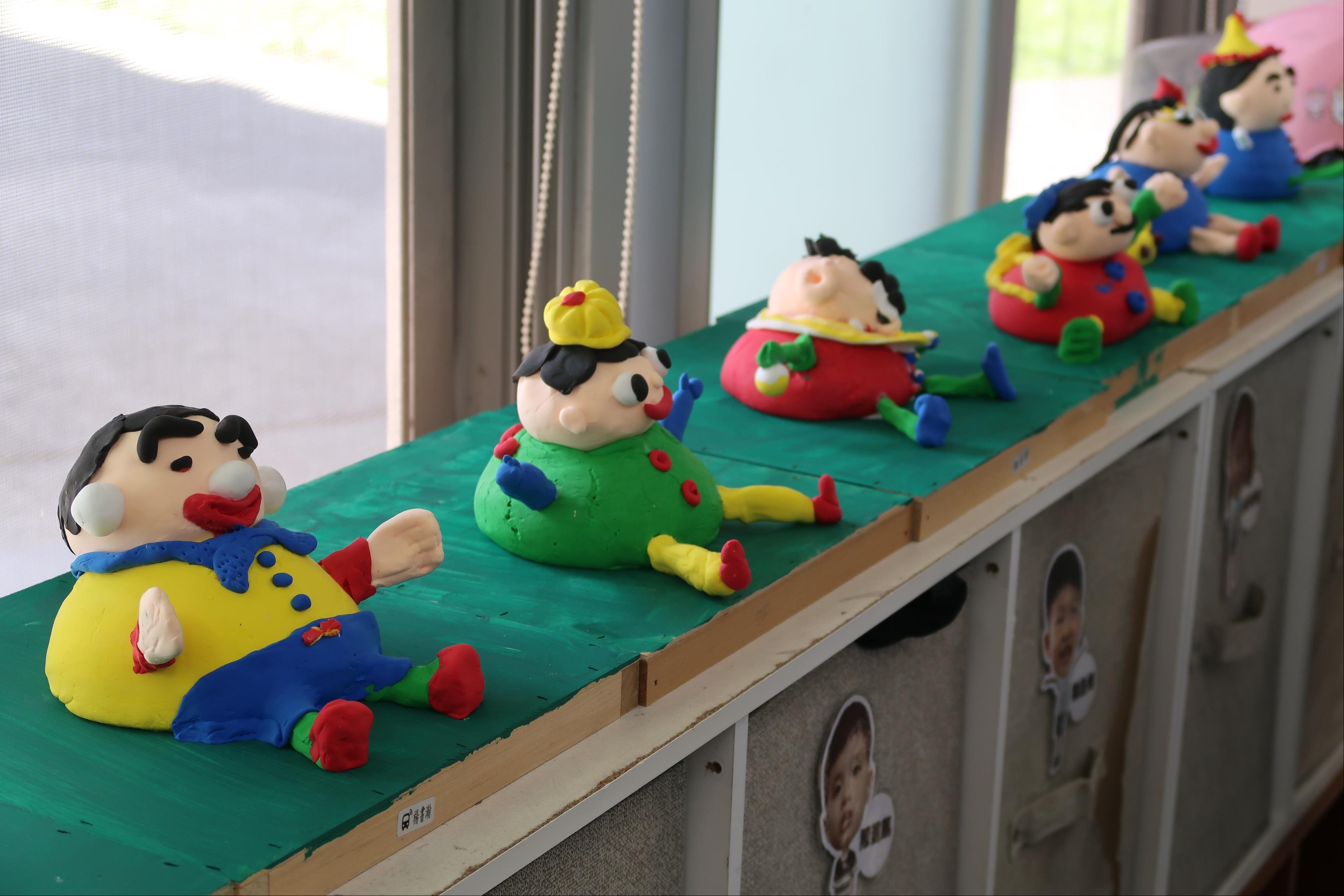 1. 以黏土搓揉、組裝方式製作人物的身體與五官。