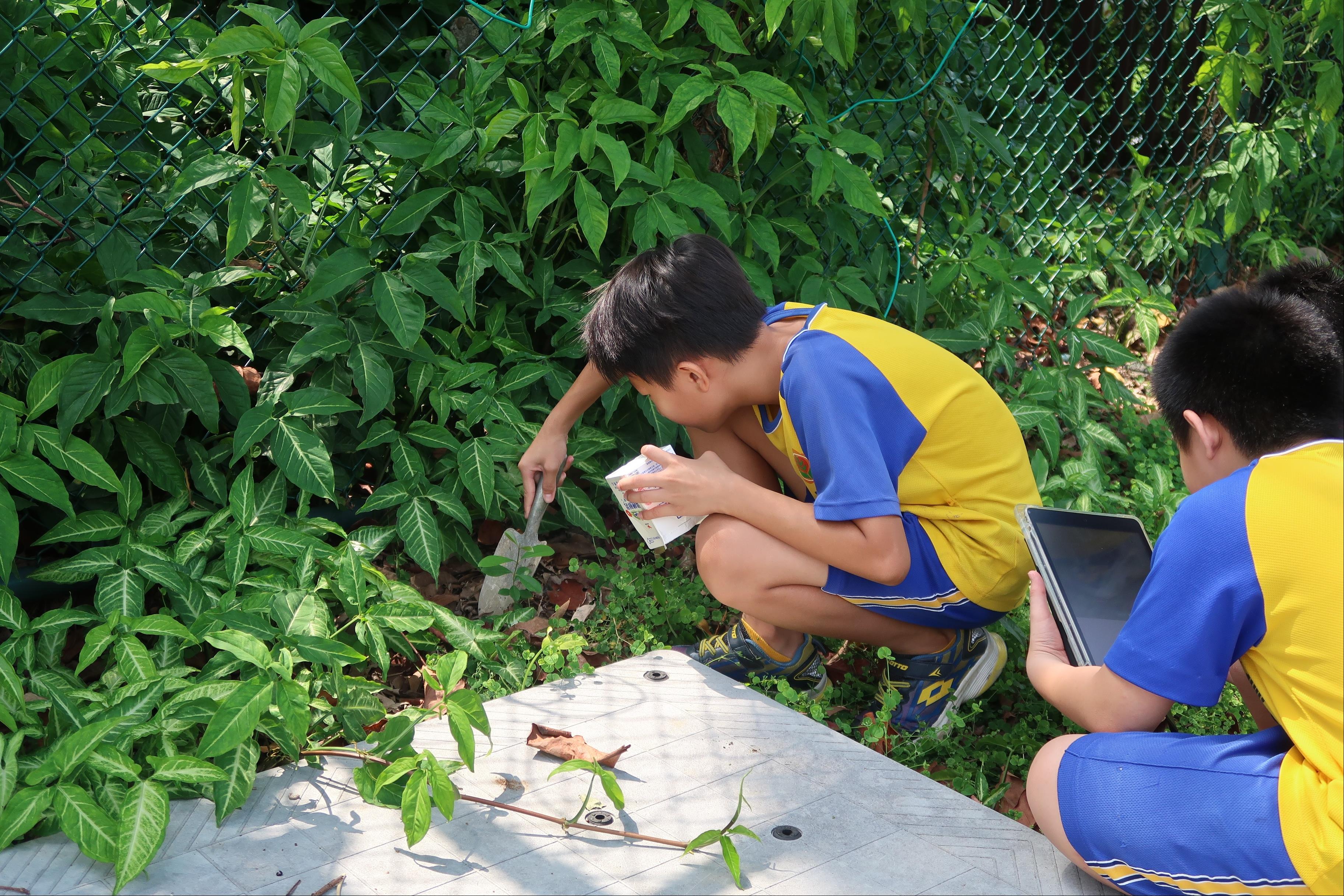 2. 實作:學生觀察、採集並移植植物到盆栽,完成種植筆記