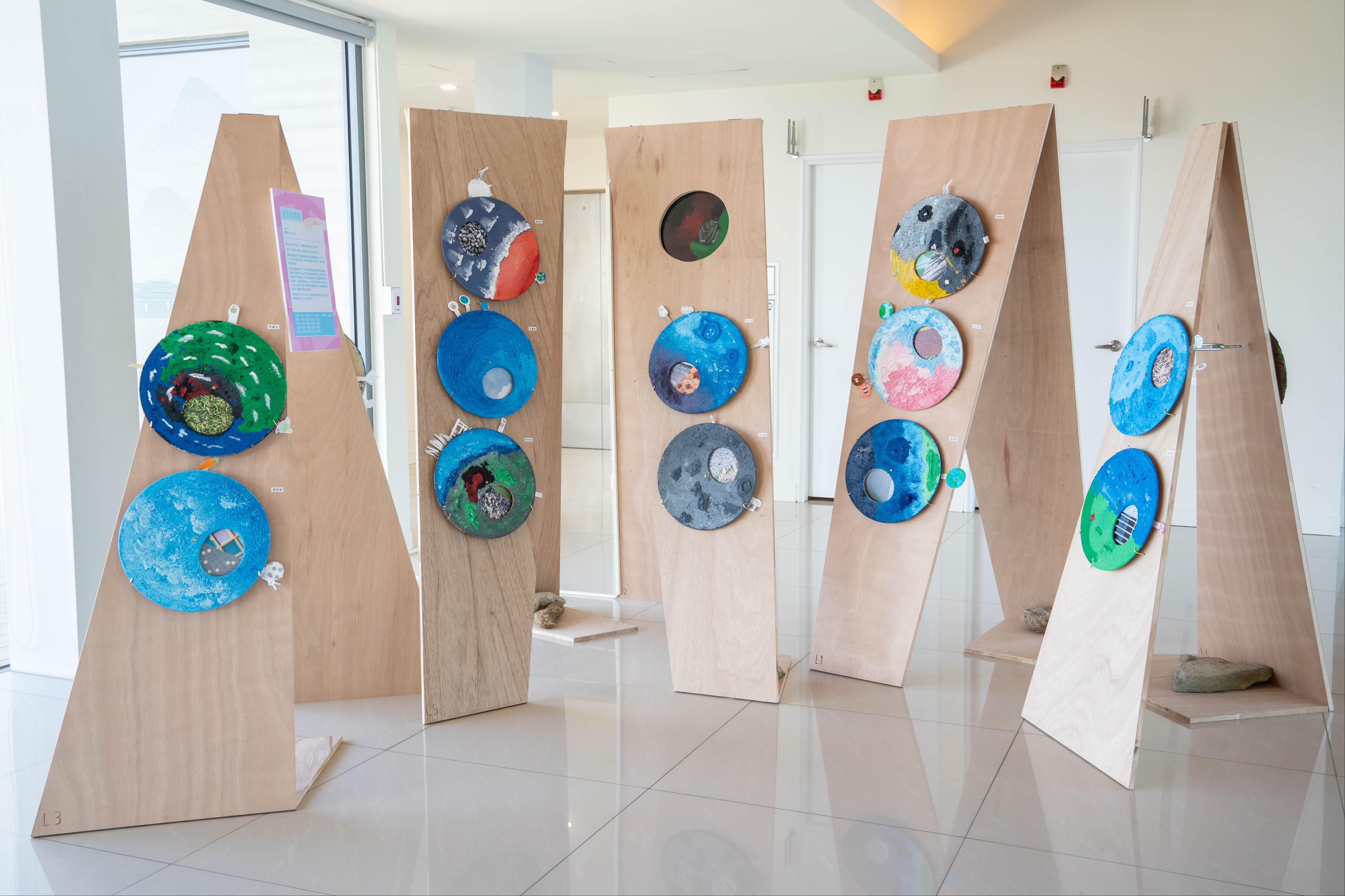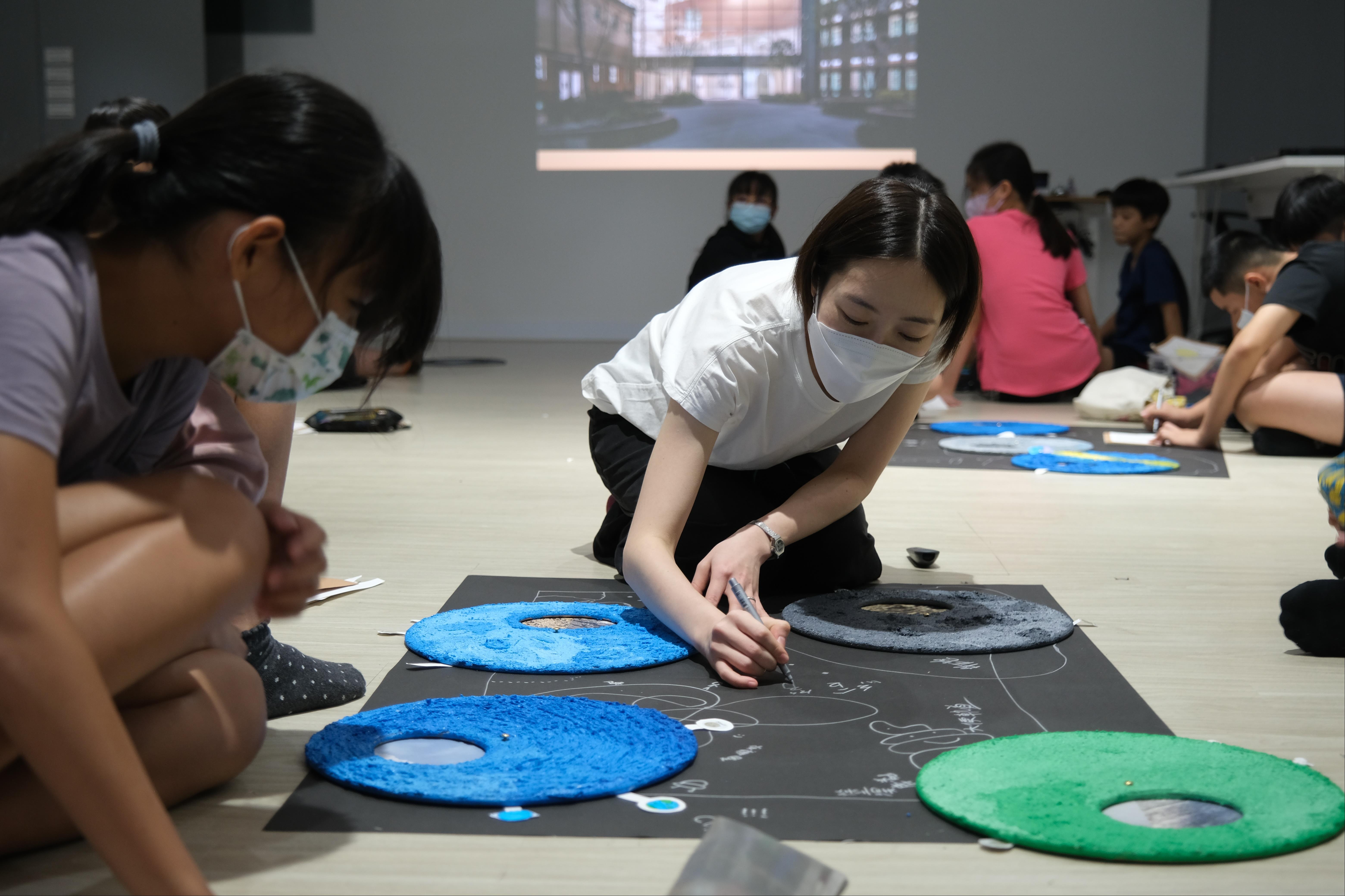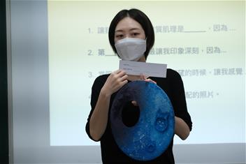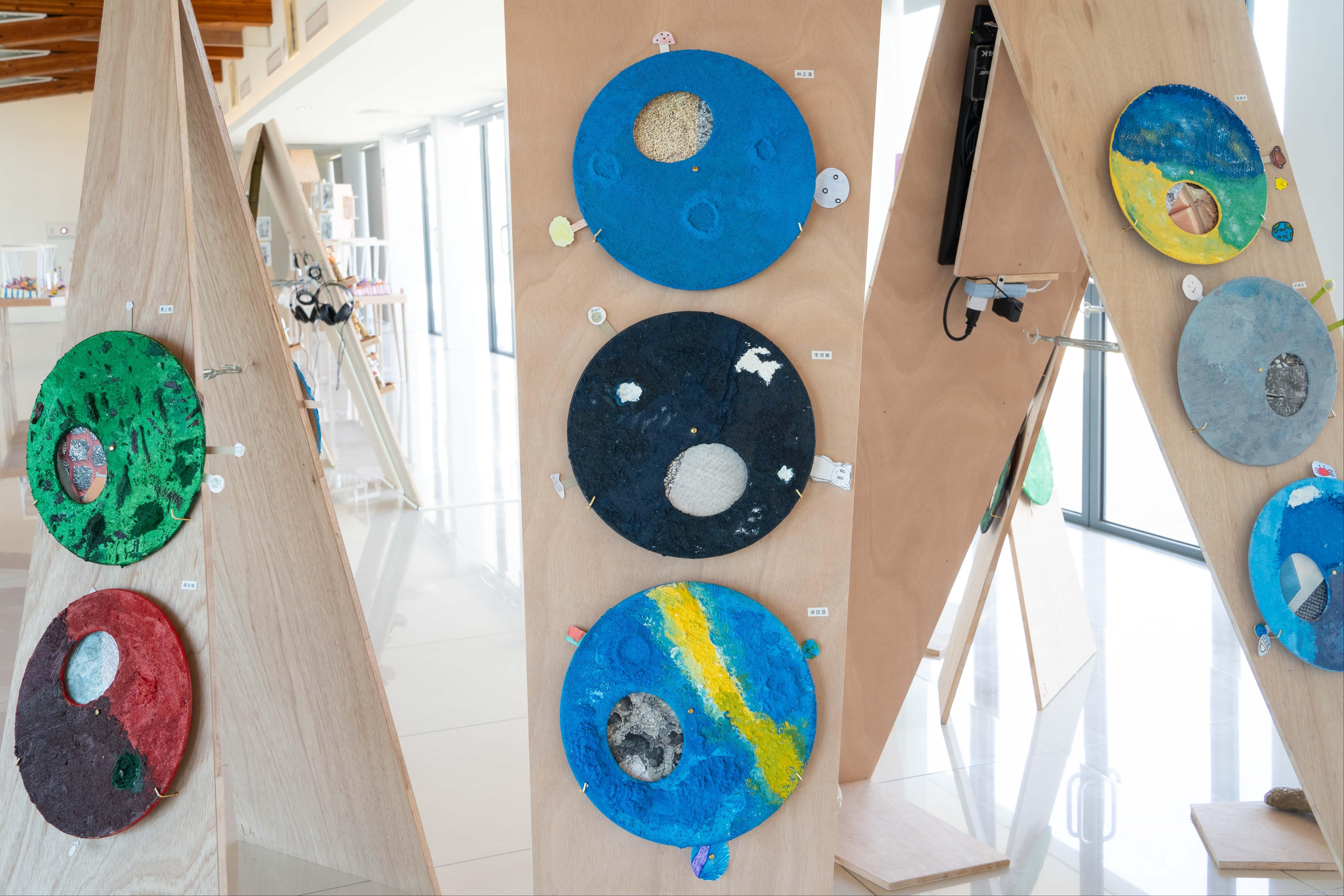 後期課程整合影像剪輯與空間配置概念,讓同學將拍攝的材質照片轉化為影片敘事,並透過「肌理圓盤」的製作與行星軌道模擬,體驗星際空間的關係。最終作品結合個人想像與團隊協作,完成從故事啟發到藝術實踐的完整創作歷程,同時深化對宇宙與自我連結的思考。
