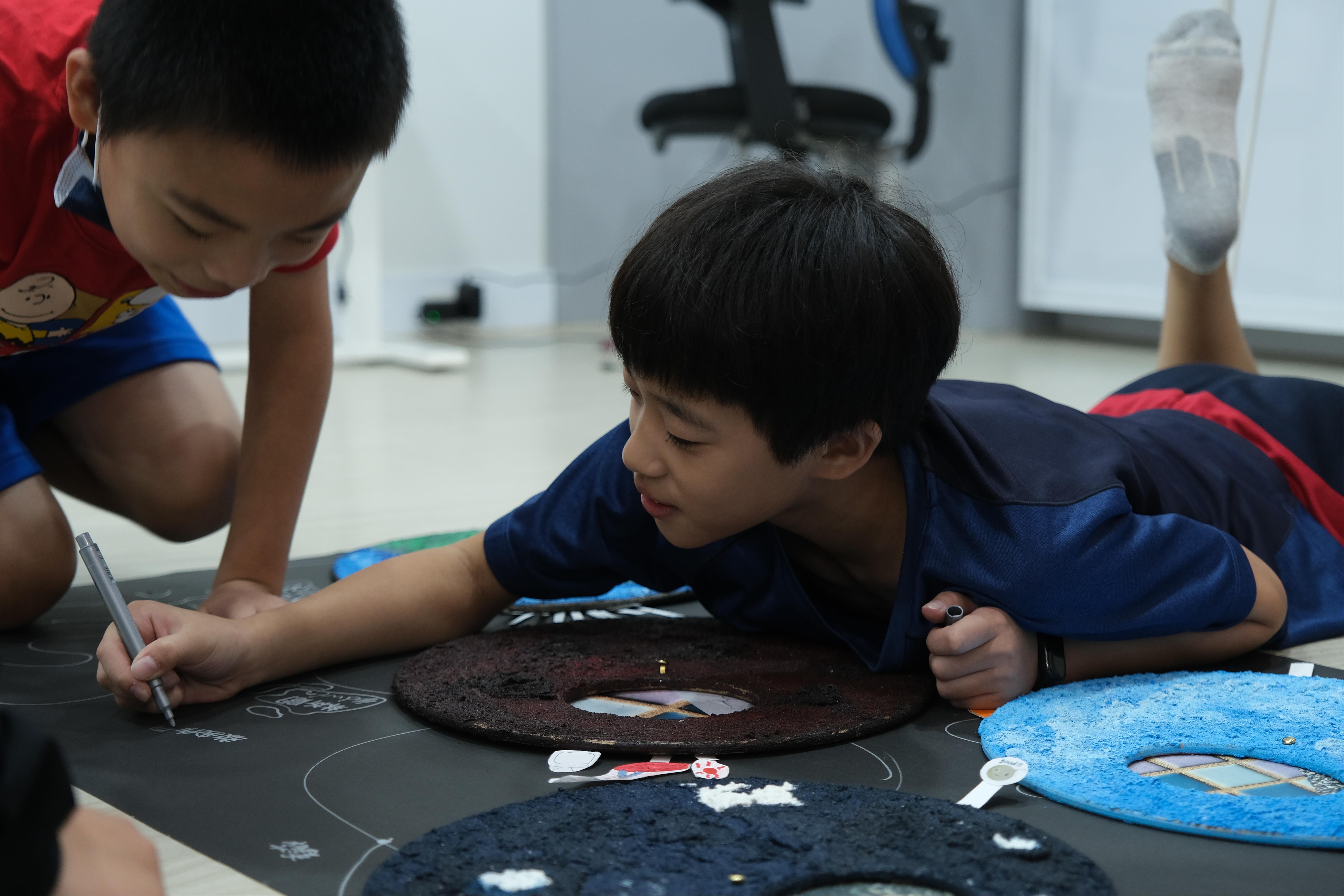 3. 學生製作星球表面,並在講師引導下補強完成作品。