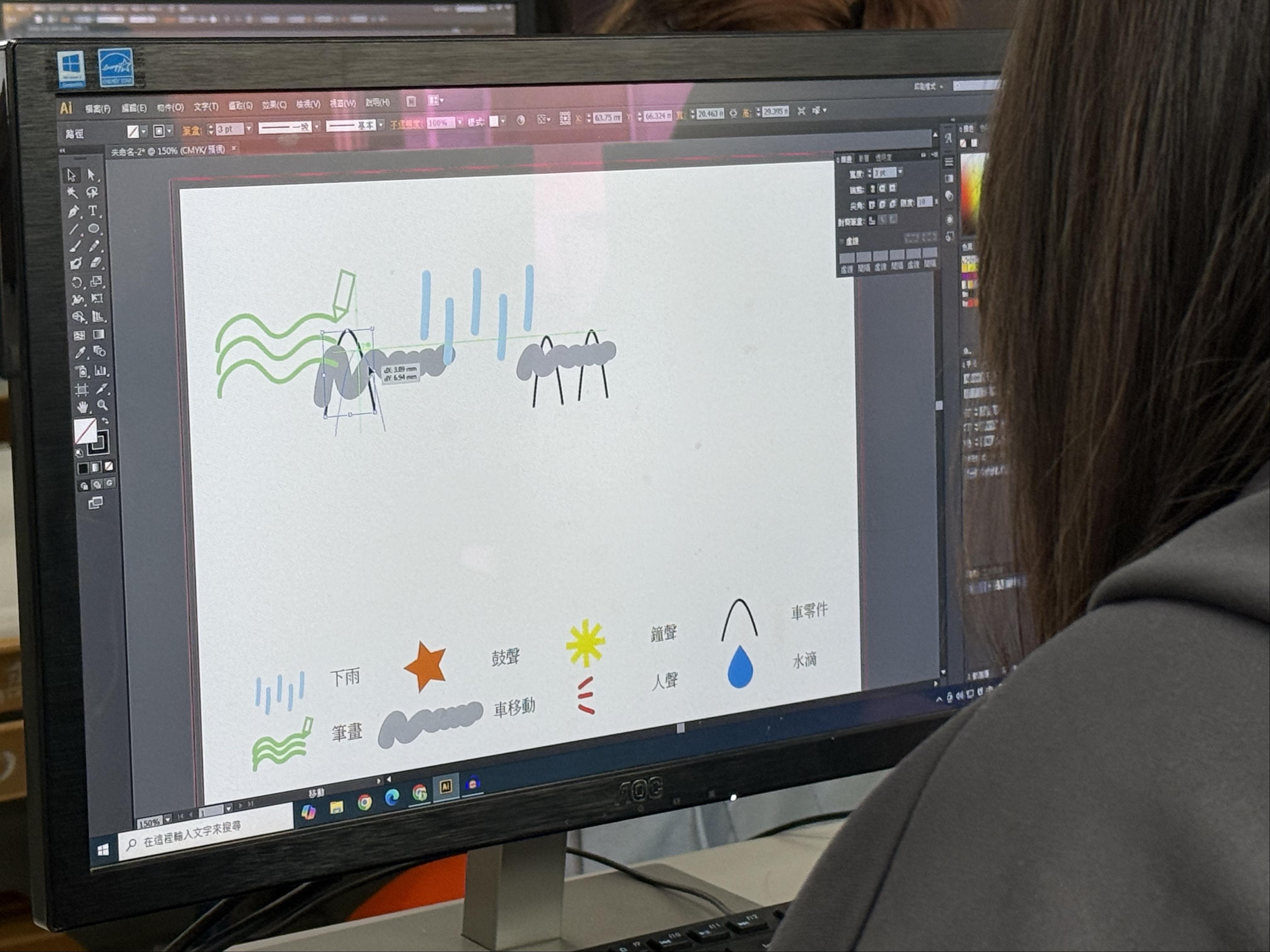 課程後期藝術家介紹「視覺記譜」,講述聲音轉換為視覺的細節。最後,結合多媒體科學生的所學,以電腦繪圖的方式,將聲音轉化為視覺圖像,讓這些看不見的聲音與感受化為可見的視覺風景。