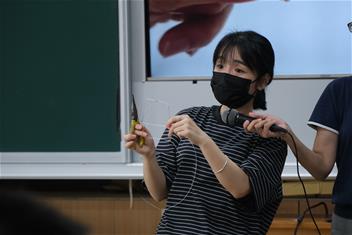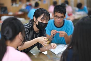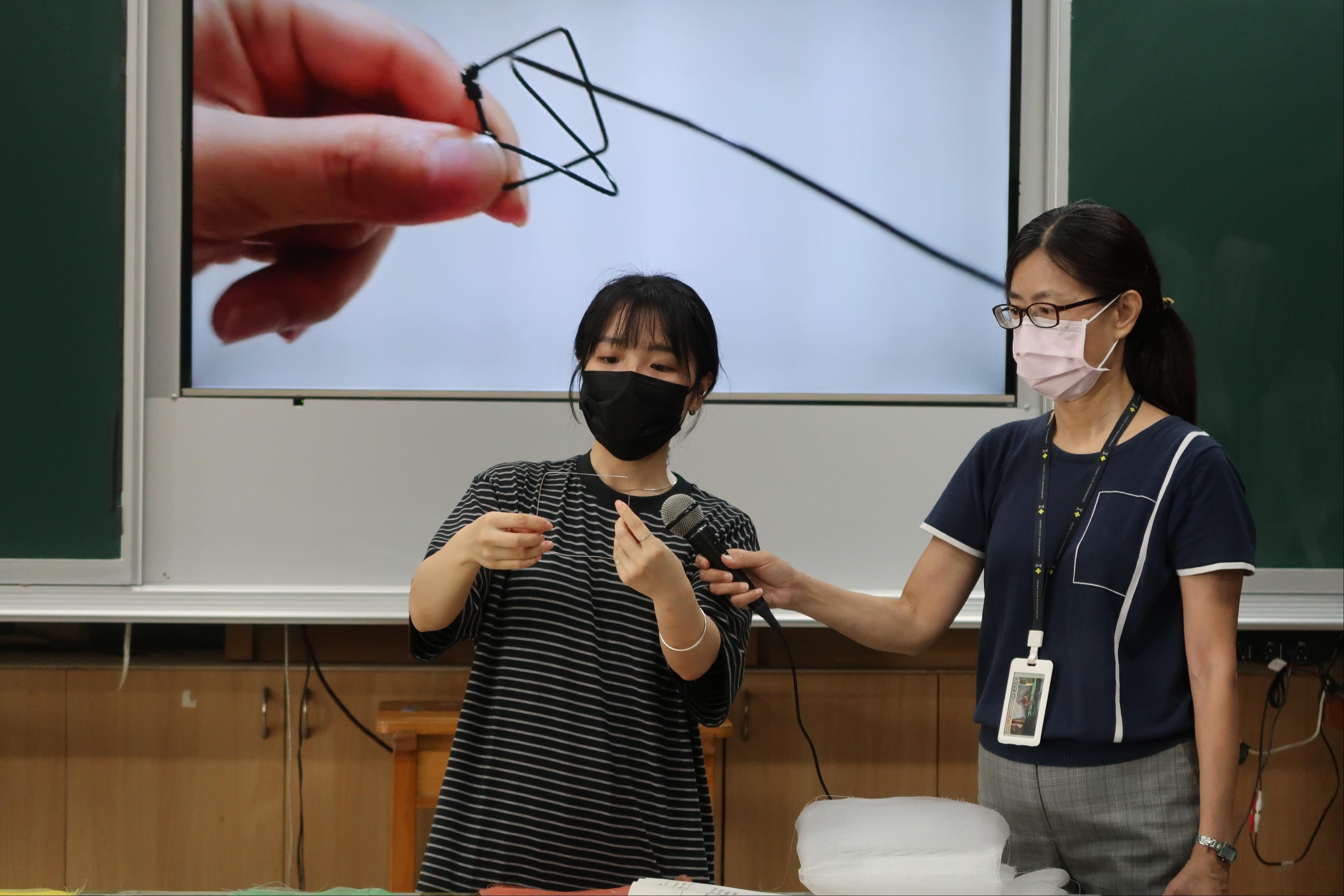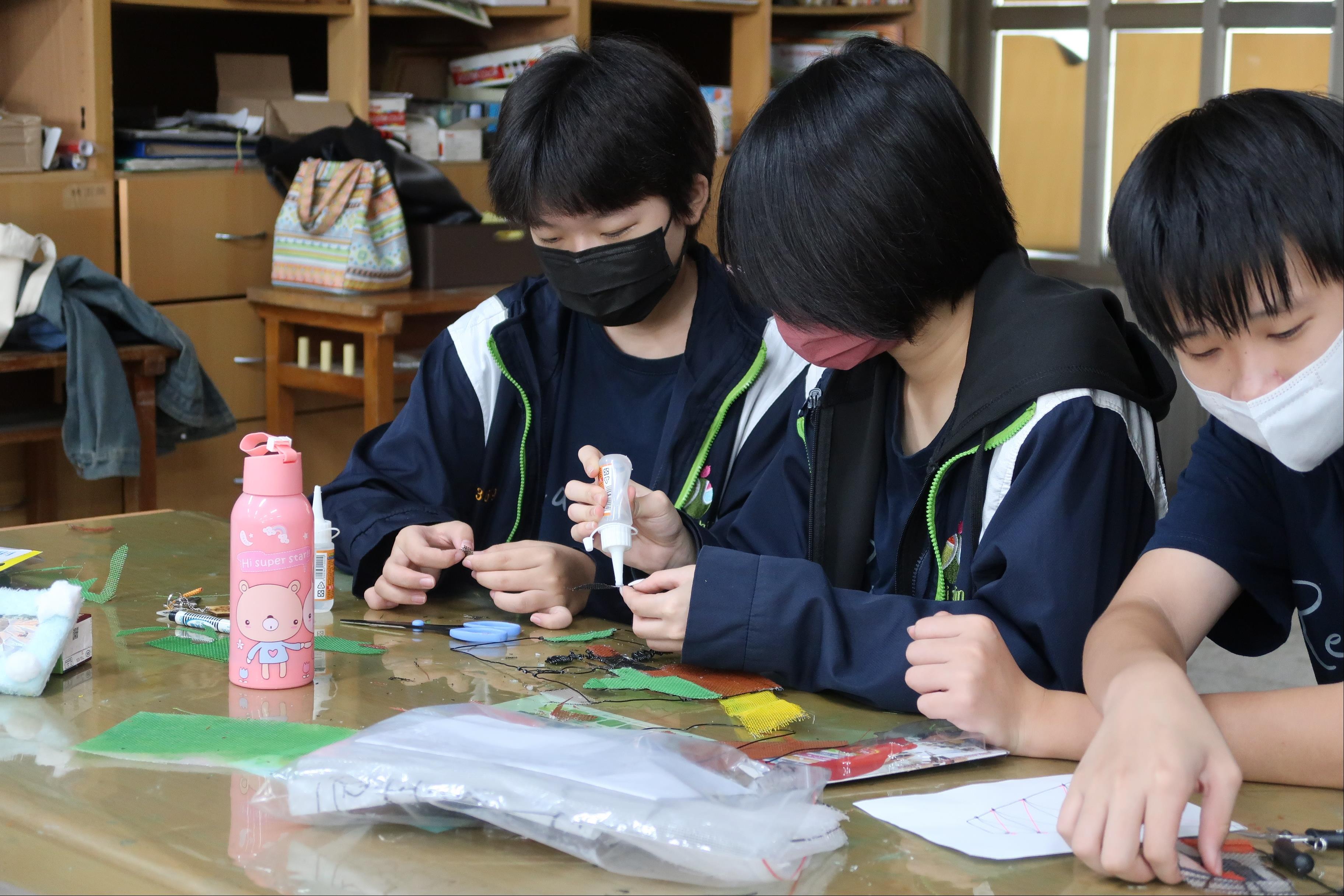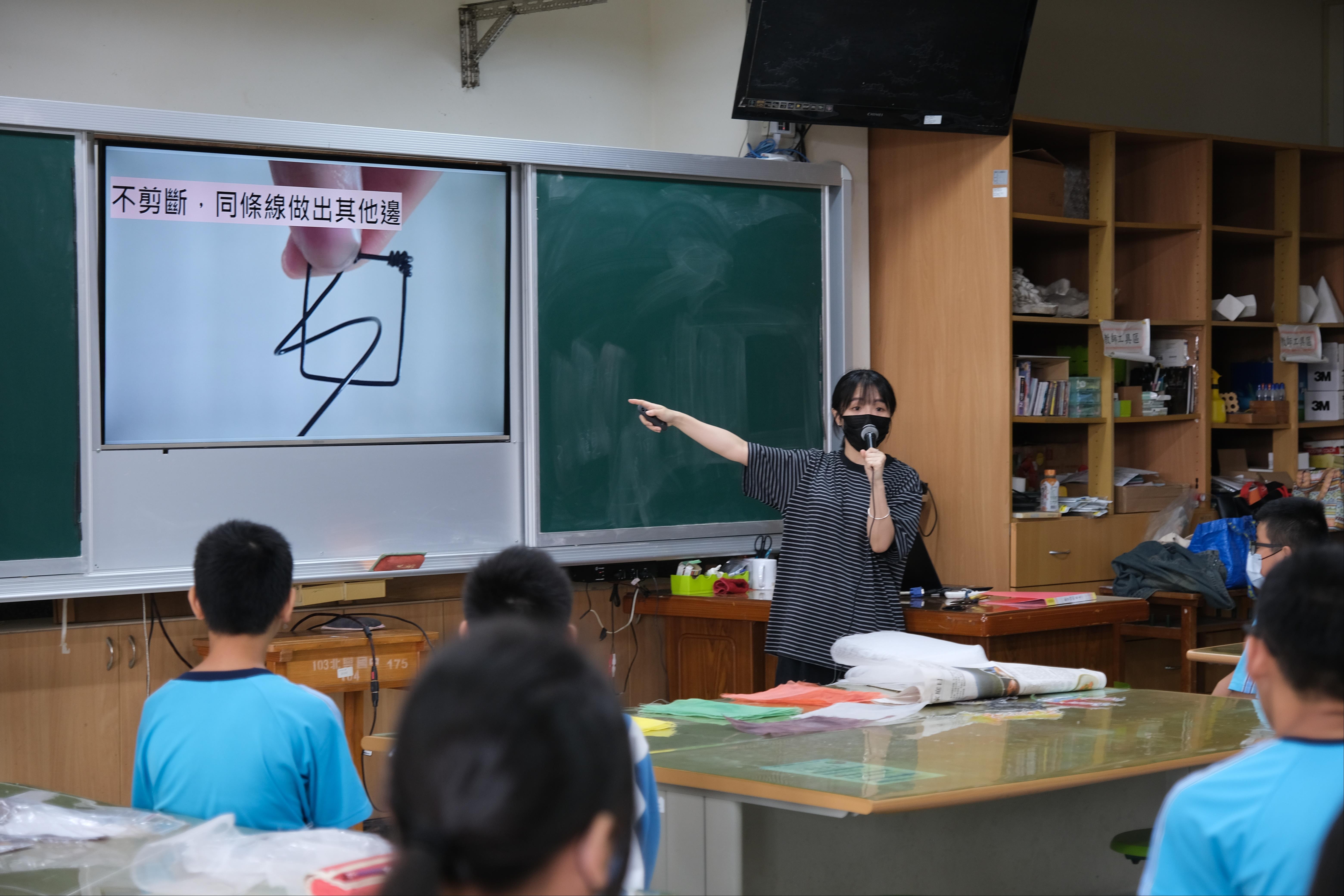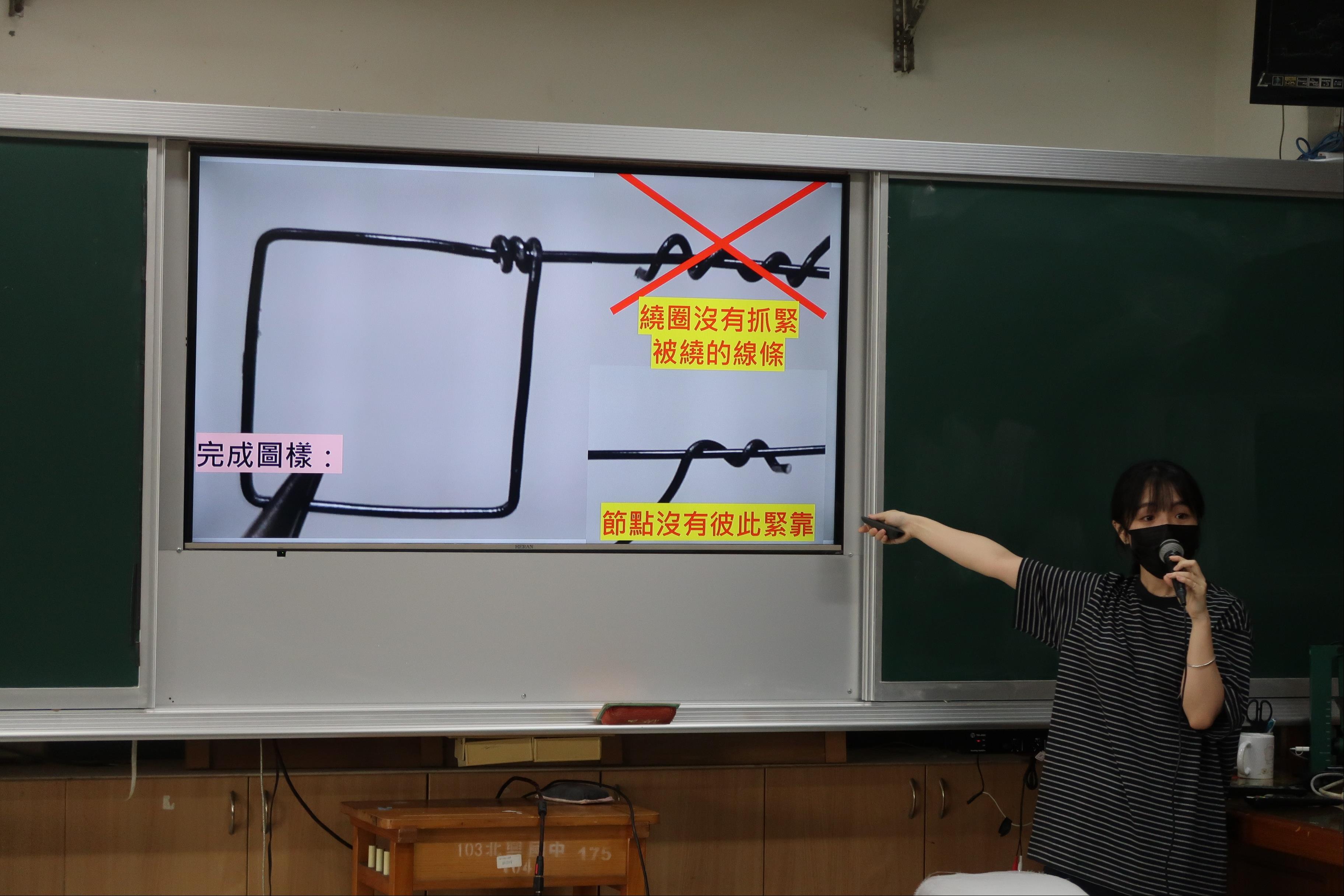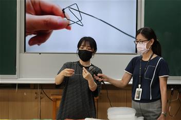 2. 帶領學生完成金屬線與塑膠網組裝,協助組員完成零件與作品整合。