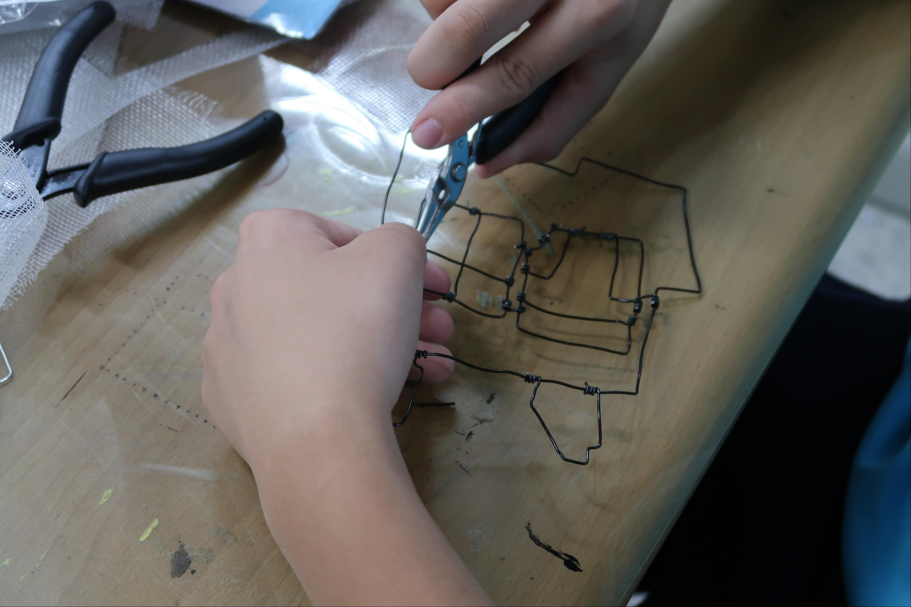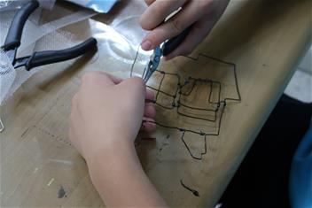 2. 帶領學生依彩色草圖丈量與製作金屬線構件。