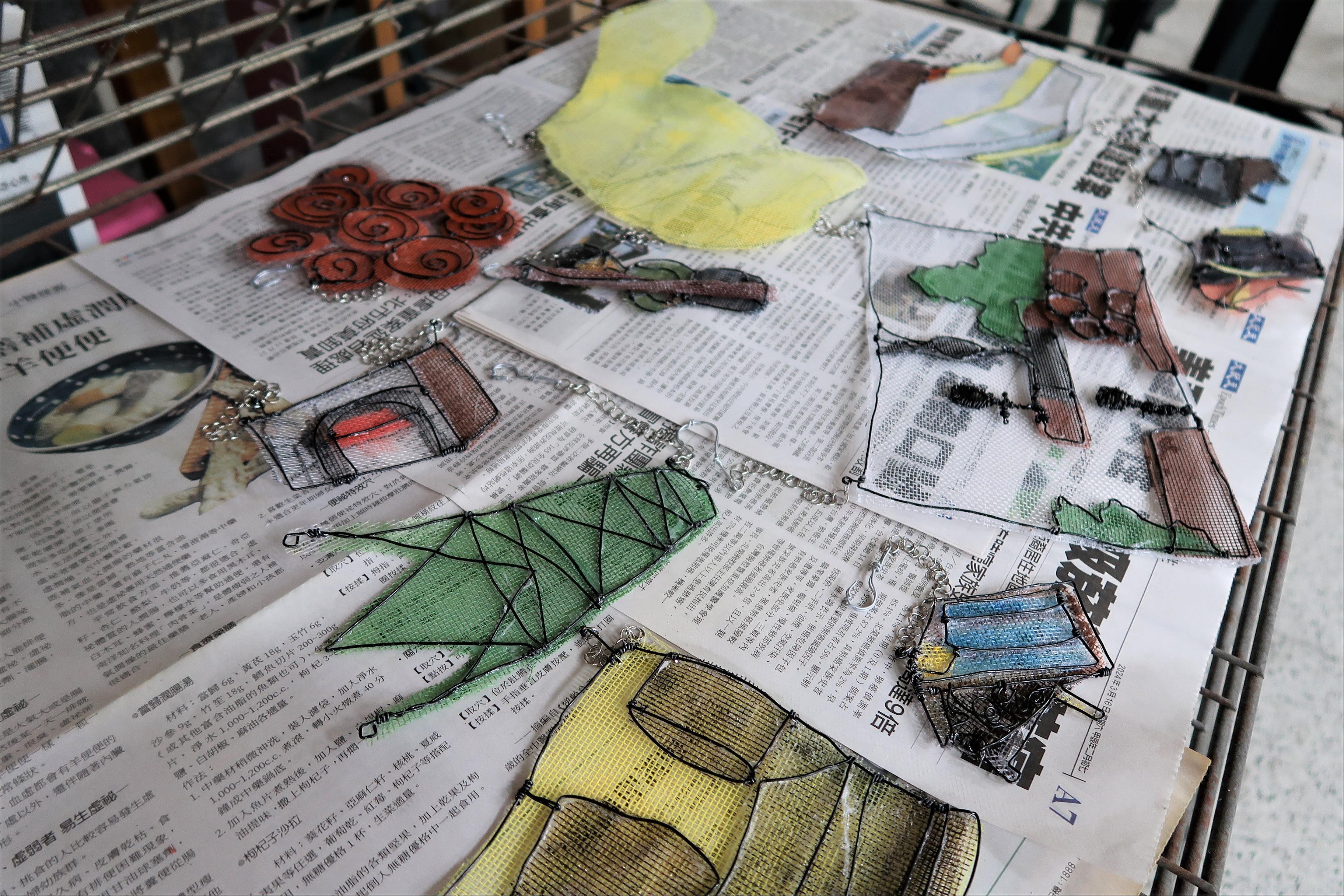 1. 回顧草圖技巧與塑膠網裁剪、線稿延伸方法,將草圖轉移至塑膠網上進行繪製與剪裁。