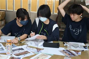2. 帶領同學使用描圖紙重疊照片繪製線稿並上色。